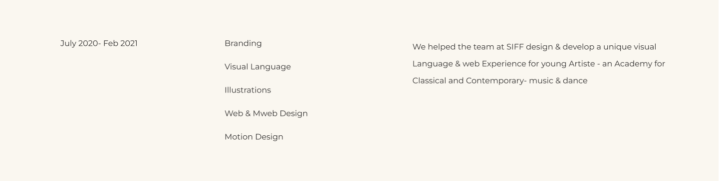 We helped the team at SIFF design & develop a unique visual Language & web Experience for young Artiste - an Academy for Classical and Contemporary- music & dance